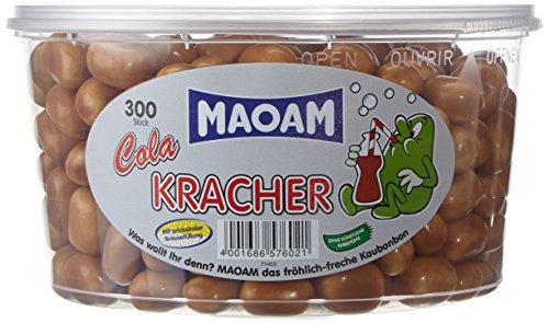 Was wollt Ihr denn? Na klar, Cola-Geschmack in Maoam. Die Maoam Cola Kracher sind mal was anderes. Wenn es beim Naschen krachen und prickeln soll, sorgen die Maoam Kracher mit Brausefüllung für aufregende Geschmackserlebnisse. Einzigartiges, dragiertes Kaubonbon mit Brausekern. Und diese Brausefüllung bewirkt den „Kracher-Effekt“: das Aufplatzen der Dragee-Decke. 1200g finden Sie in einer Dose. Da geht der Nachschub von dieser Leckerei so schnell nicht aus.