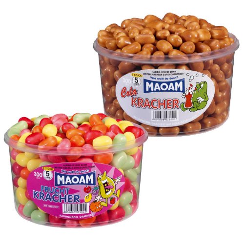 Ein echter Kracher! Probieren Sie die Haribo Maoam Frucht-Kracher in der 1200g Dose und erleben Sie 300 Mal den prickelnden „Kracher-Effekt“. Die mit Brause gefüllten Kaubonbons sorgen auf jeder spritzigen Party für einen einzigartigen und fruchtigen Prickelspaß.