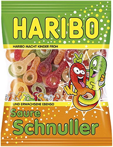 Sauer macht lustig. Haribo Saure Schnuller sind köstliche Fruchtgummis in sechs unterschiedlichen Geschmacksrichtungen. Die spritzig-fruchtigen und ca. 4,5 cm großen Schnuller sind gezuckert und haben eine weiche Konsistenz. Lassen Sie sich von dem süßen Mantel nicht täuschen; denn darunter verbirgt sich ein extra-saurer Kauspaß. Sie erhalten in dieser leckeren Mischung folgende Sorten: