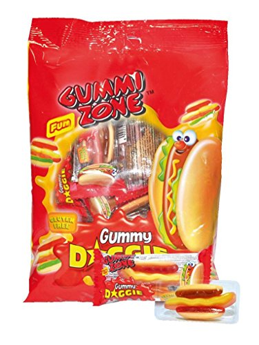 Fruchtgummi und Schaumzucker in Hot Dog Form.