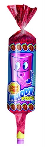 Mit dem Chupa Chups Melody Pop können sie ihr eigenes Lied pfeifen und gleichzeitig den Geschmack der fruchtigen Erdbeere schmecken.