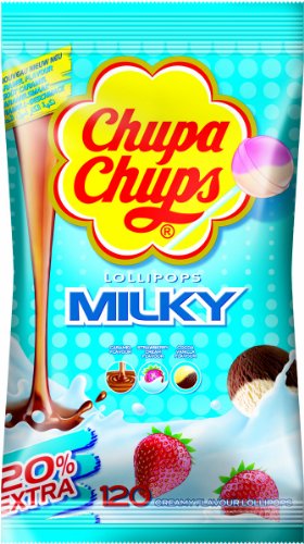 Für die Sahne-Fans. Mit Chupa Chups Milky bekommen Sie den extra-sahnigen Geschmack vom Stiel. Die cremigen Köstlichkeiten überzeugen mit einem intensiven Geschmack von Karamell, Erdbeer-Sahne und Kakao-Vanille. Lutschen Sie diese leckeren Lollis und lassen Sie sich vom sahnig-cremigen Aroma verführen.
