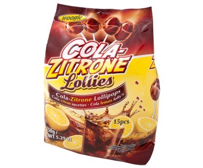 Cola-Zitrone Lollies im 15 Stück-Beutel 150g