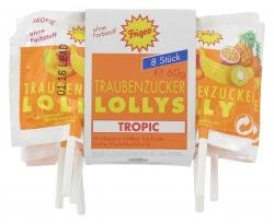 Frigeo Traubenzucker-Lollys in drei verschiedenen Geschmacksrichtungen: Tropic, Kirsche und Erdbeere. Varianten sind nicht auswählbar.